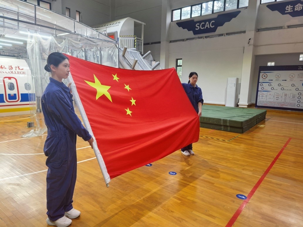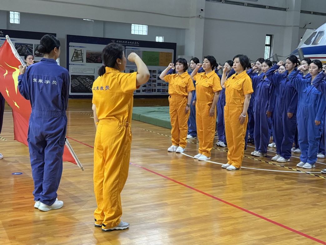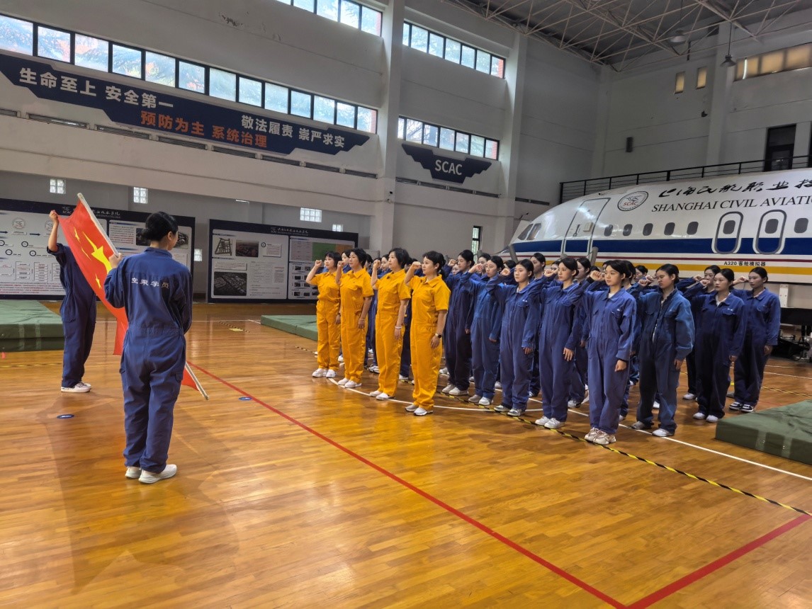“我将始终敬畏生命,守护旅客和机组人员的生命安全;我将始终敬畏规章,严格遵守各项安全规定和操作流程;我将始终敬畏职责,恪尽职守,熟练掌握应急处置技能。” 10月14日,民航乘务学院实训课的序幕,在一场满含职业信仰的宣誓仪式中庄严拉开 —— 专业教师们带领全体学生面向国旗,庄严举起右拳,声线坚定、字字铿锵地宣读誓言,让“责任与担当”的职业种子,在实训课开篇便深深植根于民航学子心中。