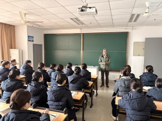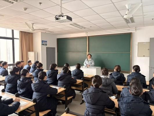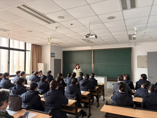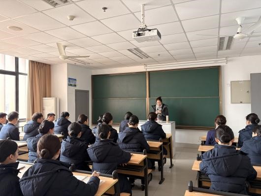 随后,民航乘务学院学徒制项目负责人吴江华老师结合当前民航业快速复苏、人才需求旺盛的行业背景,向同学们阐述了学徒制班的独特优势。吴老师指出,校企协同育人的模式能够帮助同学们更早接触企业文化、更快掌握岗位技能,希望同学们珍惜机会,把握青春,在理论学习与实操训练中全面提升综合素质。第三期学徒制班级学校导师姜明老师、徐海燕老师先后发言,重点强调了本学期学习任务的重要性和艰巨性。他们勉励同学们既要扎实掌握理论知识,也要刻苦锤炼专业技能,更要注重培养严谨细致的工作作风和团队协作精神。专职辅导员张舒岩老师则从日常管理角度出发,提醒同学们严格遵守校纪校规,合理安排学习与生活,保持积极向上的心态,以饱满的精神状态迎接新学期的各项挑战。