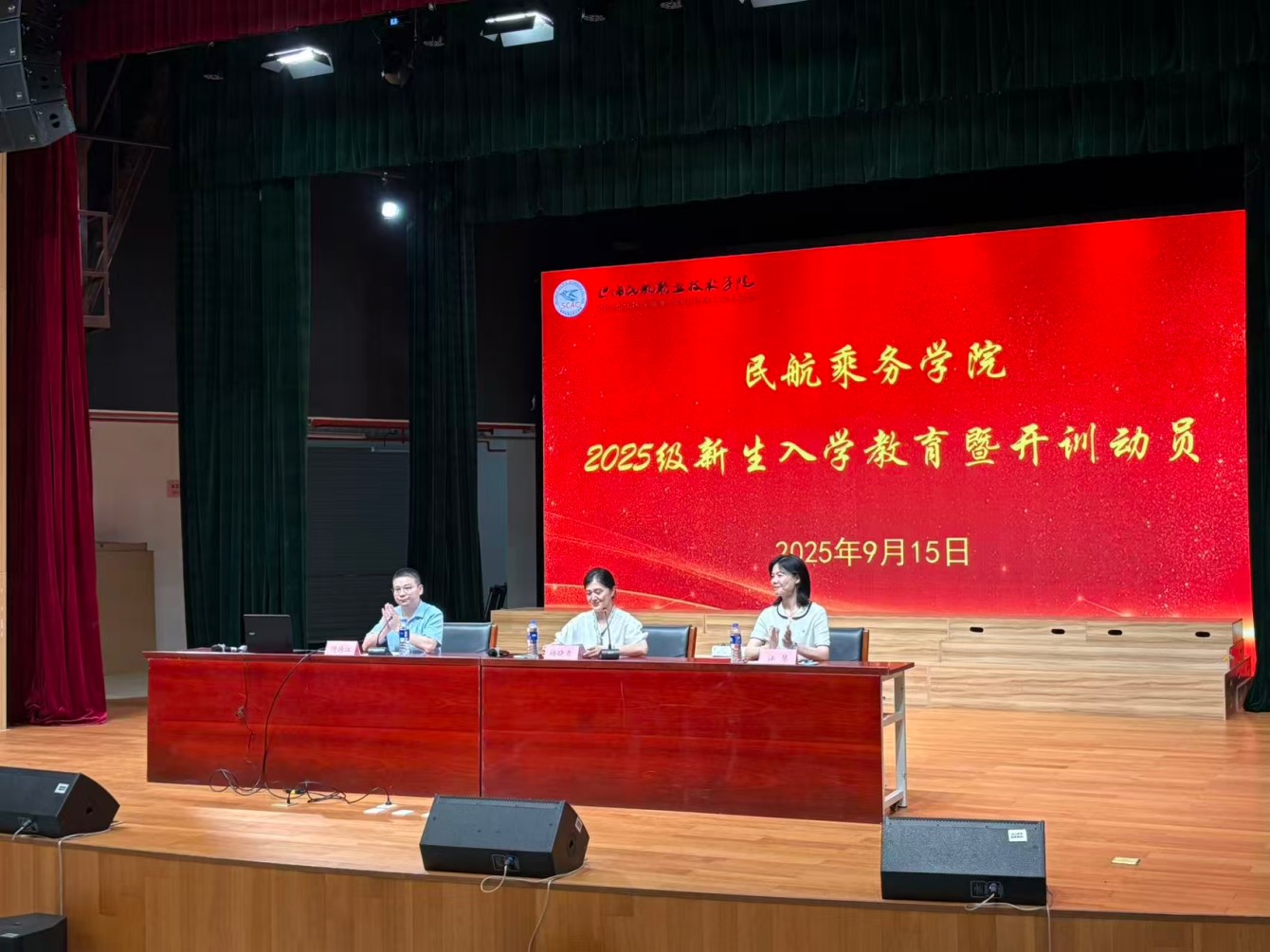 2025 年 9 月 15 日下午,上海民航职业技术学院民航乘务学院 2025 级统招新生入学教育暨开训动员大会在浦东校区大礼堂隆重举行。民航乘务学院院长、党总支书记杨晓青,党总支副书记汪慧,新生辅导员、教导员、承训教官、学导员及 670 余名 2025 级统招新生齐聚一堂,共同开启新生们的民航求学新篇章,大会由学院学工办主任饶德江主持。