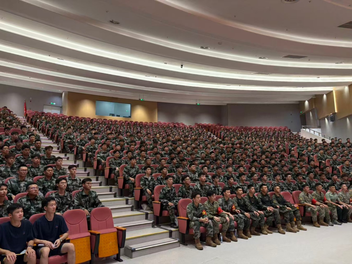 随后,汪慧副书记介绍了准军事化管理的相关内容。通过教导员、学导员制度、一日生活制度、仪容仪表规范等方面的要求,来培养作风优良、自信自强自律的民航优秀储备人才。同时对新生同学提出了几点期望:一是要以坚定信念投入军训,克服困难、严守纪律,展现新时代青年的良好风貌;二是要在训练中学会团结协作,互帮互助,凝聚集体力量;三是要把军训中养成的优良作风转化为学习动力,树立远大理想,努力成长为有理想、敢担当、能吃苦、肯奋斗的优秀大学生。
