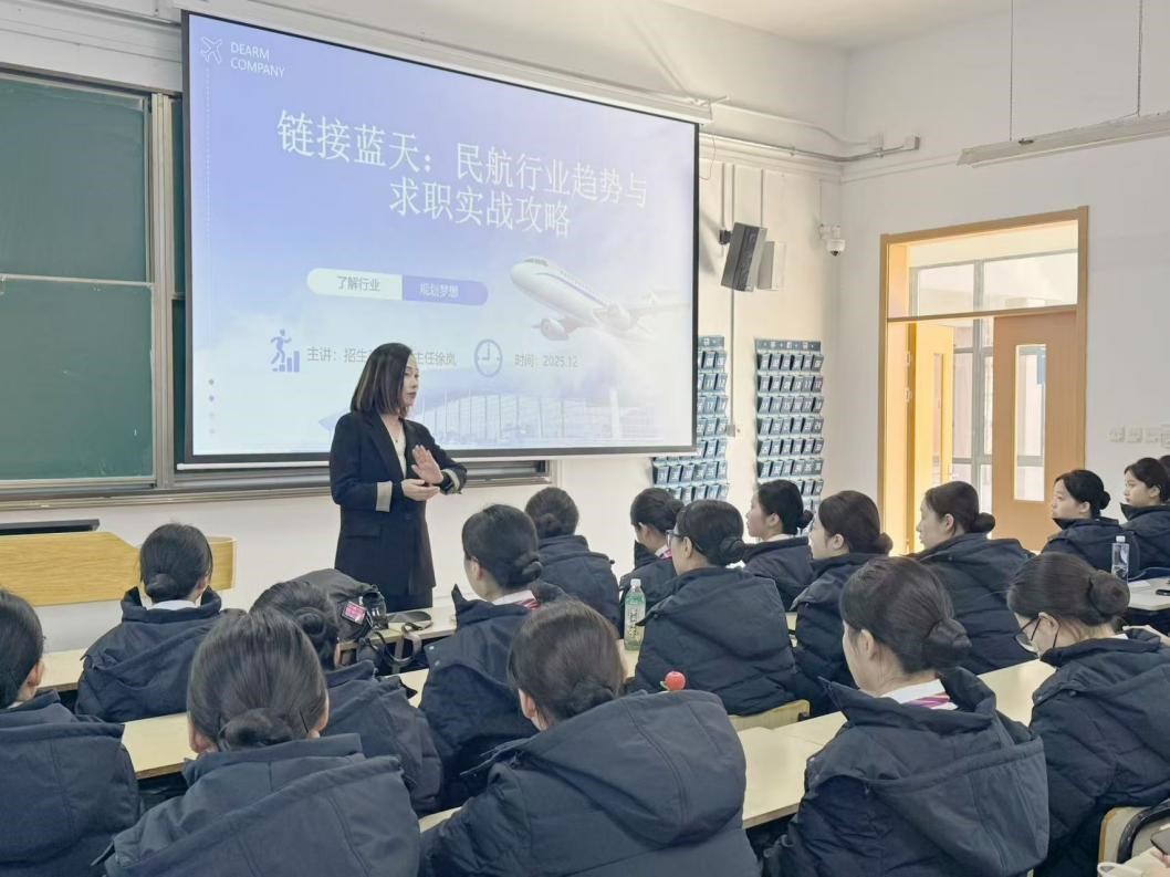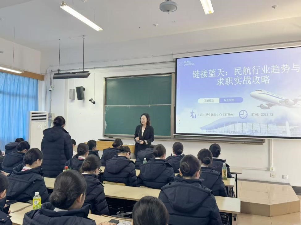 暖冬时节,一场题为“链接蓝天:民航行业趋势与求职实战攻略”的讲座温情开讲。招生就业中心主任徐岚以生动的故事为引,为同学们带来了深入而实用的分享。让大家卸下就业焦虑,看见职业的更多可能。