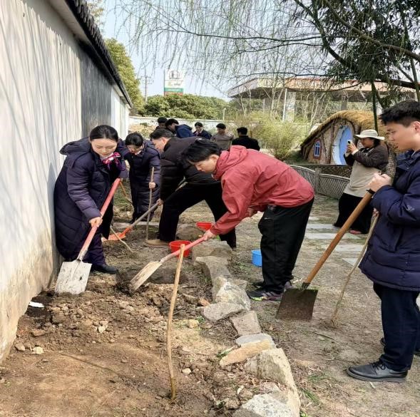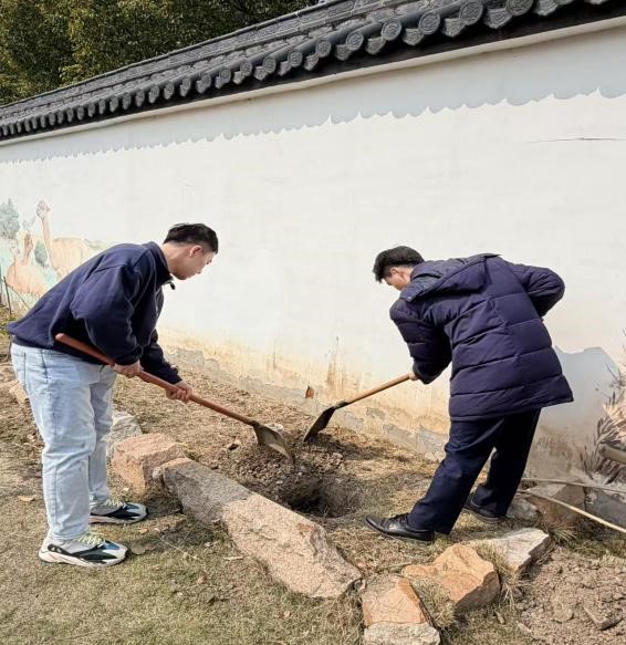 活动现场春意盎然、干劲十足。校企青年们分工协作、默契配合。大家以劳动践行生态文明理念,用双手栽种下一株株树苗,让新绿在土地扎根,也让责任与担当在心中生长。