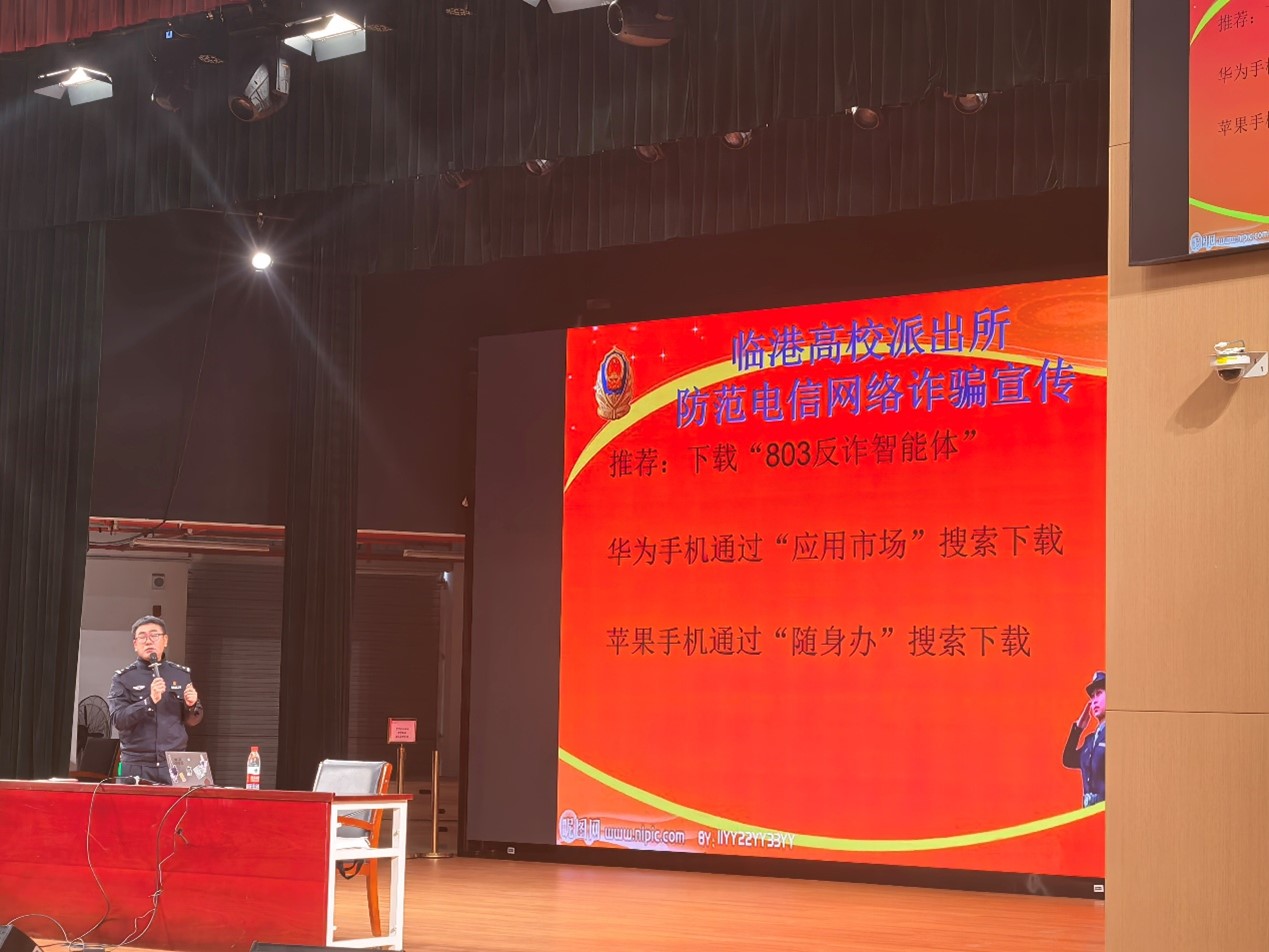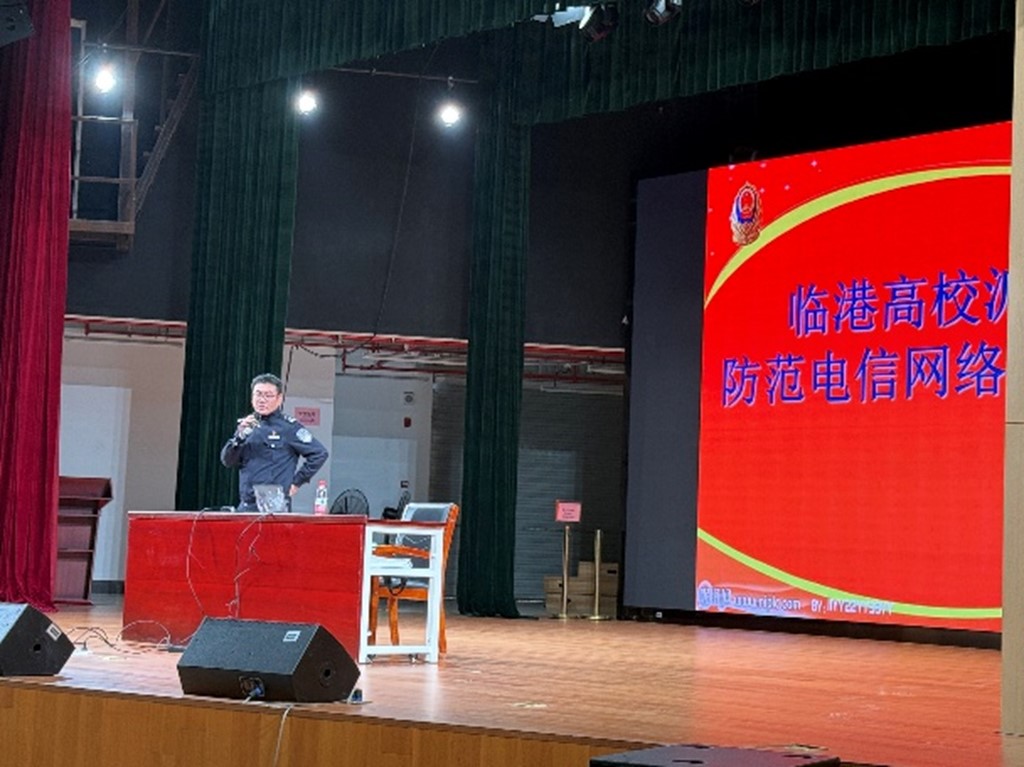 为切实加强在校学生安全防范意识,提升自我防护避险能力,全力筑牢校园安全根基、维护校园和谐稳定。3月26日晚,临港高校派出所护校民警王伟深入校园,开展专题安全教育宣讲活动。本次宣讲聚焦电信网络反诈防护,为全体在校师生带来一堂内容充实、贴近实际、实用性强的安全法治必修课。