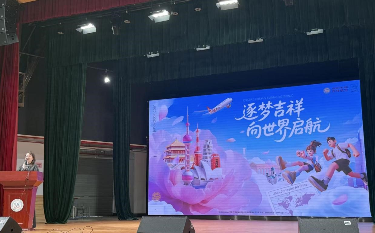 在最后的互动答疑环节,吉祥航空招聘团队就同学们关心的招聘流程、面试材料、薪资构成等细节问题进行了耐心细致的解答,并送出了精美礼品,现场互动踊跃,掌声不断。