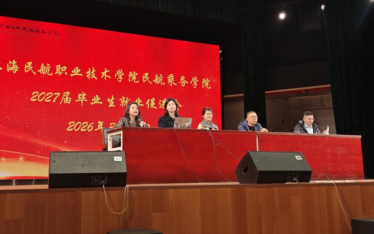 为扎实推进2027届毕业生就业工作,帮助同学们认清民航行业发展形势、明晰学业与就业发展目标,3月26日18:00,民航乘务学院在浦东校区大礼堂召开2027届毕业生就业促进会。民航乘务学院院长、党总支书记杨晓青,党总支副书记汪慧,副院长邱珂,学工办主任饶德江、副主任段苏颖出席,2024级统招班、2025级贯通班全体学生参加。会议由党总支副书记汪慧主持。