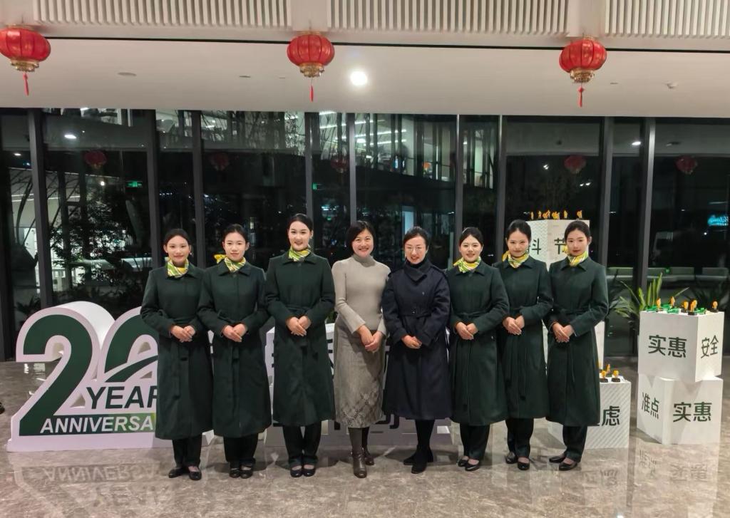 2025年12月12日至13日,在民航乘务学院专业教师孙庆芳、李力老师的带队指导下,我校空中乘务专业2024级春秋学徒制班的志愿者同学们,赴上海春秋航空总部新大楼,圆满完成了春秋集团2025年度工作会议暨表彰活动的礼仪服务保障工作。从首日的彩排演练到次日的会议举行,同学们始终以昂扬的精神面貌、专业的礼仪素养,展现了新时代民航学子知行合一、精益求精的青春风采,也亲身体验了春秋航空“奋斗、远虑、节俭、感恩”的厚重企业文化。