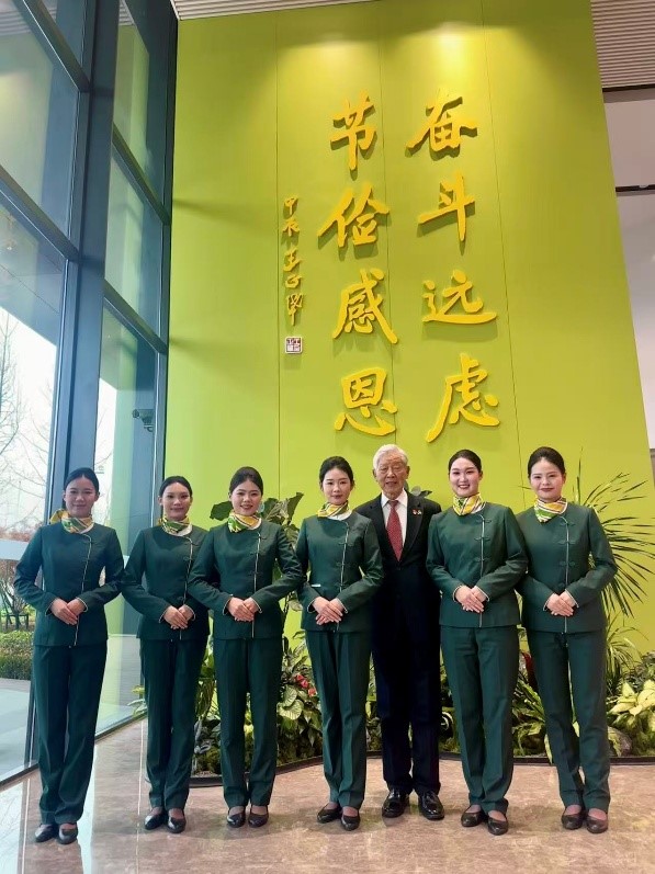 活动尾声,同学们有幸与春秋航空创始人王正华董事长合影。王董事长与同学们亲切交流、给予勉励,同学们深受鼓舞。