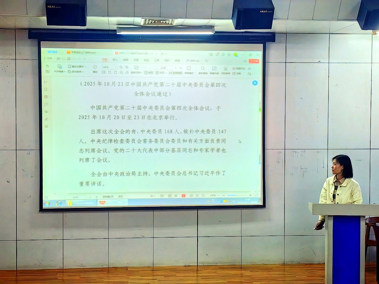 宣讲活动开展前,纪委办公室李君老师作了动员讲话,她强调“送纪上门”是推动纪律教育融入日常、抓在经常的重要举措,是学院纪委在全面从严治党背景下的一次积极探索。她指出,宣讲活动聚焦高校重点领域突出问题,结合典型案例与纪法条款,致力于扫清党纪“盲区”,帮助教职工明底线、知敬畏、守规矩,希望学院教职工能够在学院廉洁文化建设方面出谋划策,提供“金点子”,共同推动学院的廉洁文化教育走“新”更走“心”。