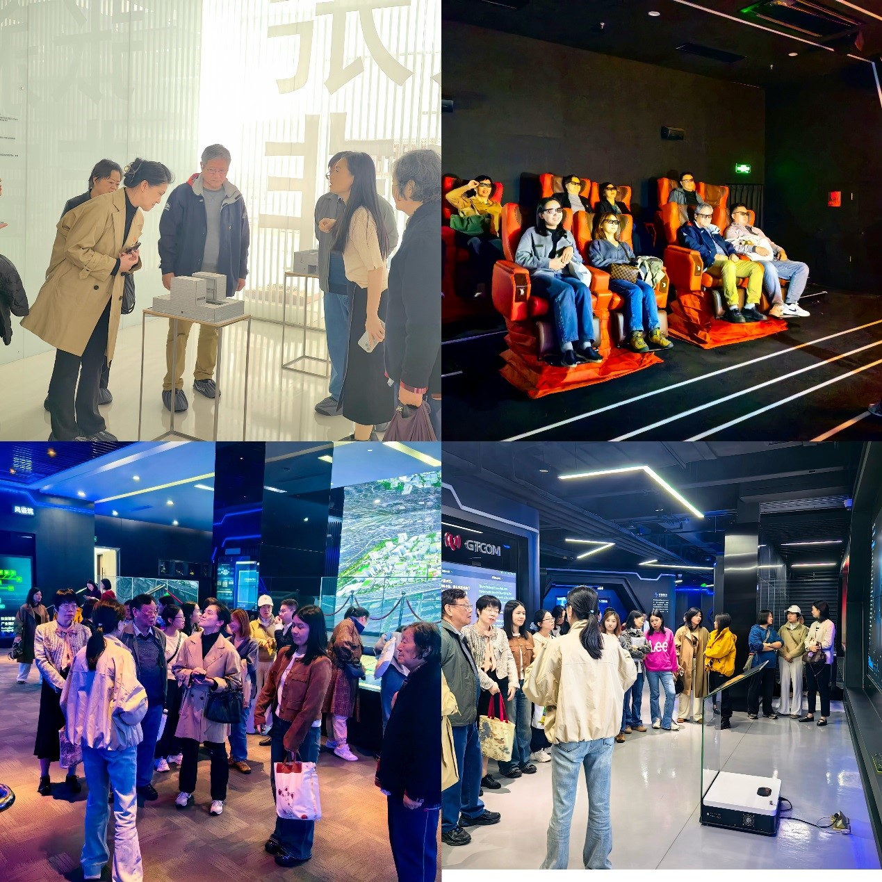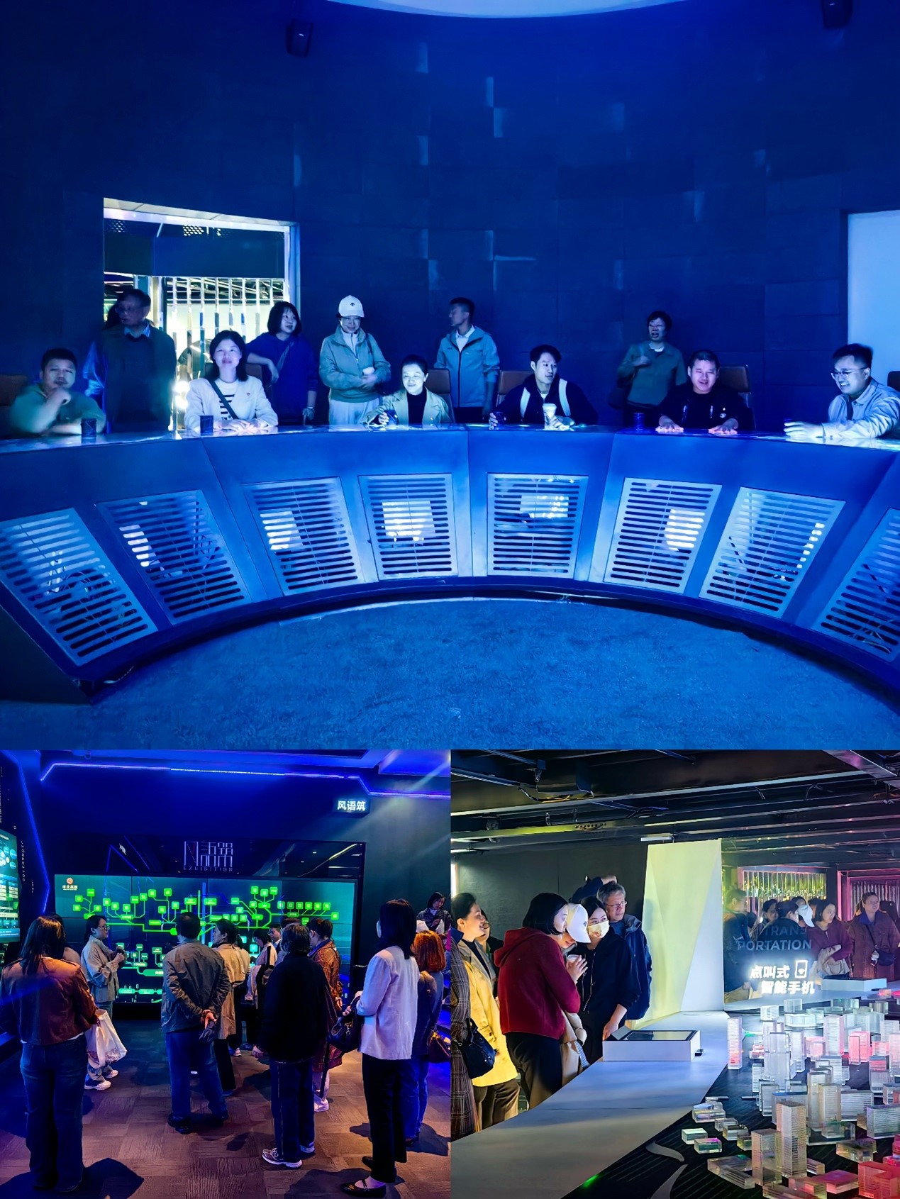 下午12时30分,参与活动的党员教师与青年代表们分乘两辆大巴,分别从徐汇、浦东两线统一出发。13时30分,队伍抵达首站——位于江场三路的风语筑文化科技股份有限公司。作为国内数字展示与沉浸式体验的领军企业,风语筑打造的沉浸式展厅,通过8K LED弧形屏、实时渲染与数字孪生技术,让党员教师们置身于科技场景与飞行模拟体验中,直观感受到科技对民航服务的深刻影响。