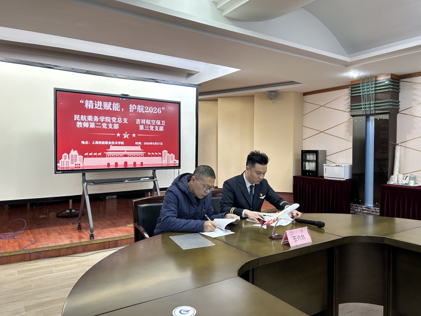 为深入贯彻落实习近平总书记关于教育事业和民航发展的重要论述,坚持党建引领业务深度融合,推动航空安保人才培养提质增效,助力民航强国建设,2026年3月27日,上海民航职业技术学院民航乘务学院党总支教师第二党支部与吉祥航空保卫党总支第三党支部在浦东校区携手开展“精进赋能,护航2026”支部共建活动。双方签署共建协议、开展技能展示、交流实战经验、共商共育方案,以党建为纽带搭建校企协同发展平台,实现资源共享、优势互补、双向赋能,为2026年民航业高质量发展筑牢人才与安全防线。